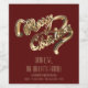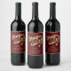 Elegant Faux Gold Foil Script God jul på Bordeaux Red Background, Vin eller mousserande vin Flaska-etikett, Unik julgåva för familj, vän, kolleger och affärskolleger. Lägg till Namn, Adress och webbplats.