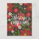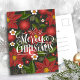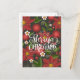 Elegant Red Poinsettia Blommigt Modern Script Helg Vykort