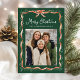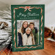 Fira årstiden med det här elegant helgdag-fotokortet som har en djup, grön bakgrund som avger ett rött färgband och grönt ram i stil i festive. I designen visas familjefotot på framsidan med "God jul" i vitt skript, vilket skapar en slående kontrast mot den mörk grönt bakgrunden. På motsatt sida finns utrymme för ett andra foto och ett personligt helgdag. skapar detta som ett tidlöst och sofistikerat sätt att nå julhälsningar.