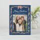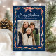 Elegant Red Ribbon och Greenery Navy 2 Photo Julkort