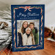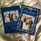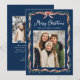 Skicka festive hälsning med det här elegant helgdag-fotokortet med en djup marin bakgrund som på ett vackert sätt framhäver det vattenfärgade ribbonbåget och ram. "God jul" visas i ett vitt skript ovanför din familj namn och lägger till en förfinad beröring till de klassiska rött- och grönt-accenterna. Baksidan ger plats för ett andra helgdag för foto och personlig, skapar den här designen som ett tidlöst sätt att visa familjefotografier och fiera årstiden i stil.