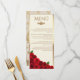Present your wedding feast with the timeless elegance of our Red and Cream collection. This sophisticated menu card features a soft, light cream background adorned with a luxurious gold frame and a delicate arrangement of deep red roses at the base. The refined gold-tone typography clearly displays your dinner courses, from appetizers to dessert, adding a touch of modern luxury to your reception tables. Perfect for classic, romantic, or fall weddings where every botanical detail matters.