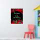 Pretty birthday welcome sign with red roses flowers and green foliage. The words can be changed to suit your own details or requirements. Would be perfect for a birthday party.