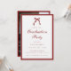 Elegant Red Script Coquette Graduation Party Photo Invitation. A classy and formal wine red and white graduation celebration invite, designed in a coquette style, and script lettering. Personalize with a graduation photo on the back, and all of your party details for family and friends on the front.