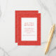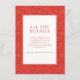 This elegant wedding enclosure card features a striking red background with intricate swirling patterns, creating a sense of depth and movement. The central white square provides a clean contrast, framed by a thin red border, while the text is presented in a sophisticated serif font that adds to the formal aesthetic. Perfect for conveying important details about your special day, this design combines classic style with practicality, ensuring clarity and organization. Its warm color palette and balanced composition evoke feelings of celebration and anticipation, making it an ideal choice for any wedding event.