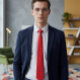 Elegant Red Tie with Embroidered-Effect Blue Stars, Distinctive Men's Accessory, elegant red tie, embroidered effect stars, distinctive accessory, star tie, embroidered-effect tie, men's formal wear, unique gift for him, special occasion tie, red and blue tie