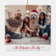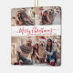 Modern enkel Elegant Calligraphy Red and White 3 Photo Collage God jul Script Ceramic Ornament. Den här festliga, minimalistiska, viskösa tre foto-helgdag Ornament har ett söt-rutnätsfotokollage och säger "God jul"! Texten "God jul" är skriven i ett handskript som snabbt byts ut mot svan i rött mot vit färg-bakgrund. På motsatt sida ett foto med familjen namn. Söten är viktig för din familj och dina vänner i julens Julhelg.