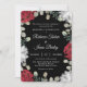 Elegant Red White Blommigt Greenery on Black Bröll Inbjudningar