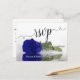Detta vackra RSVP-kort gör det enkelt för dina gäster att svara på din bröllopsinbjudan. Designen har en vacker kunglig blå eller koboltfärgad ros som reflekteras i en vattenbassäng med vågor och krusningar, och en spetsig kaligrafisk titel. Baksidan är utformad för att dina gäster ska fylla i och returnera med utrymme för dem att ange sitt val av måltider samt antalet gäster som kommer att delta.