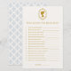 Add some fun to your gold and cream-themed bridal shower with this charming Vintage Blue Damask Regency Cameo Silhouette, Who Knows The Bride Best game! Guests will love testing how well they know the bride-to-be with this playful and interactive activity, perfect for a bridal shower celebration. These game cards are a part of a bridal shower collection with coordinating items available. We encourage you to explore the full set to create a perfectly matched celebration.