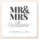 Elegant Rehearsal Förlovningsfest Classic Square Papper Underlägg. Anpassa mallen med ditt efternamn och datum för bröllop, förlovning eller årsdag. Perfekt till repetitionsmiddagen, förlovningsfesten eller bröllopsmottagningen. Kommer i rosa, svartvitt, guld och bruna alternativ.