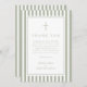 Elegant Religious Sage Green Boy Baptism Thank You Card.