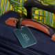 En enkel och klassikerdesign, denna bagagemärkre har en djupblå bakgrund och en silhouette av ett flygplan i silver. Beklädanågot att säga "bonresa" men kan ändras, och baksidaen personifieras med ditt namn och någon information om kontakt som du önskar. En perfekt gåva för handelsresanden.