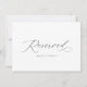 Håll din sittordning organiserad med denna eleganta ”Reserverad” bröllopsskylt för brudens familj. Med förfinad typografi på en ren bakgrund ger detta kort en sofistikerad touch till din ceremoni eller mottagningsdekor. Perfekt för att säkerställa en smidig och stilfull sittordning på din speciella dag.