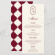 Elegant Retro Checkered Burgundy Wedding Meny