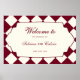 Elegant Retro Checkered Burgundy Wedding Welcome Poster