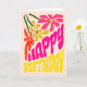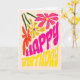 Elegant Retro Groovy Hippie Flower Birthday Kort