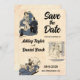 Den här vintagens efterhandsbaserade bröllopsinbjudan med tecknad passar för ett modernt bröllop. Den gamla minimalistiska designen har Elegant Retro Old Romantic Bröllop spara datum-inbjudan