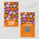 Elegant Retro Orange QR-kod Boho Groovy Blommigt Visitkort