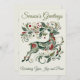 Skicka dina varmaste julhälsningar med detta unika julkort inspirerat av vintage. Kortet har en vacker och intrikat ren-design i nyanser av mintgrön, röd och guld och fångar en tidlös, retro estetik. Den eleganta "Season's Greetings"-hälsningen högst upp, tillsammans med "Wishing You Joy and Peace" längst ned, ger en hjärtlig hälsning. Personalisera framsidan och baksidan med ditt familjenamn och ett genomtänkt julmeddelande. Perfekt för alla som älskar en mix av klassiska och moderna stilar, är detta unika handritade kort ideal för att sprida glädje under den festliga säsongen.