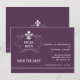 Meddela dina vänner och familj om dina bröllopsplaner med dessa Elegant Retro Stil Fleur de Lis Save the Date-kort. Kortet har en elegant Fleur de Lis-symbol design med utrymme för att lägga till ditt bröllopsdatum. Kortet läser "spara datumet" i en retro stil vit tryck. Personifiera med dina namn och bröllopsdatum. Visas här på en aubergine lila bakgrund.