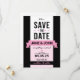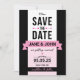 Elegant Retur stil sparar datumkortet med svartvit och rosa design. Anpassa det här meddelandet genom att lägga till din egen anpassningsbar.