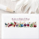 En fantastisk julreturadress. Denna färgstarka utformning har en Julafton-andedräkt av balkar och ädelstenar med typografi av snyggten. Enkel att anpassa med din egen information.