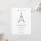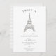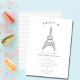 En elegant, snyggt och en minimalistisk inbjudan från 16 svenska partier med ett Paristema, med ett Eiffel torn täckt med rinestoner (detta är en digital effekt), enkel typografi och delikat, handdragen rand på baksidan.