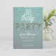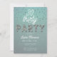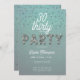 En enkel, modern, elegant- och chic-30års födelsedag-inbjudningsmall med akvatisk grönt, ord PARTY täckt av rhinestoner (simulerade, inte riktiga stenar, detta är en digital effekt), modernt kalligrafiskt skript och typografi i vitt. En chic, tidlös design för en kvinna på hennes trettioårsdag.