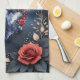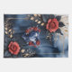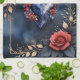 Elegant ro arrangemang med gyllene blad på mörk blått vattenfärgsbakgrund. En snyggt, dekorativ design med röd ros, mörk löv och gyllene accenter mot en djup blå, vattenfärgsliknande bakgrund. Den känsliga gyllene ram och balanserade placeringen av blommarna ge är motivet till en förfinad och sofistikerad dragningskraft. Perfekt för alla som kärlek elegant blommigt konst, romantiskt ro och lyxiga färg kontraster. Perfekt för väggkonst, hemdekanter, tillbehör till mode och presenter med en aning sofistikerad.