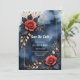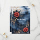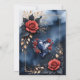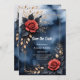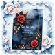 Elegant ro arrangemang med gyllene blad på mörk blått vattenfärgsbakgrund. En snyggt, dekorativ design med röd ros, mörk löv och gyllene accenter mot en djup blå, vattenfärgsliknande bakgrund. Den känsliga gyllene ram och balanserade placeringen av blommarna ge är motivet till en förfinad och sofistikerad dragningskraft. Perfekt för alla som kärlek elegant blommigt konst, romantiskt ro och lyxiga färg kontraster. Perfekt för väggkonst, hemdekanter, tillbehör till mode och presenter med en aning sofistikerad.