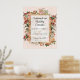 "Elegant Ro Blommigt Rosa och Guld Välkomsthälsning Bröllop Poster." Fullständigt anpassade för tillfälle. Ro glitter ram, rullverk, botaniska blommigtar i vintage i form, guld senap, persikor och rödblommor med elegant blek dammbas. Skapat av internationellt licensierad konstnär och formgivare, Audrey Jeanne Roberts, upphovsrätt.