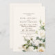 Den moderna minimalistiska bröllopsinbjudan vit ros med guld damm är elegant och klassiskt inbjudan. Utformningen har ett handskrivet teckensnitt och modern minimalistisk design. Om du vill ändra information klickar du på "Anpassa".