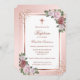 Elegant ro blommigt-flickornas baptisminbjudan med ro guld konetti och ram adorerad med guld och grönaktig utformning av evenemangsdetaljer. Anpassa enkelt onlinen.