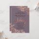 Elegant, modern land och trendig faux tryckt blommigt från ro guld på lila mauve bakgrund och handskrivet penselskriptteckensnitt typografi, bröllopsinbjudningar. Denna klassiska och sofistikerade utformning är perfekt för det trendig och det snyggt som gifter sig. Anpassa med ditt eget meddelande på framsidan och en anpassad inledande monogram på baksidan. All fotoutskriftsdesign.