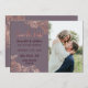Elegant, modern land och trendig faux tryckt blommigt i ro guld på lila, bakgrunden och handskrivet penselskriptteckensnitt typografi, Spara-the-Date bröllop-kort. Denna klassiska och sofistikerade utformning är perfekt för det trendig och det snyggt som gifter sig. Anpassa med ditt eget meddelande på framsidan och en anpassad inledande monogram på baksidan. All fotoutskriftsdesign.