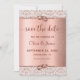 Lägg märke till att du kommer att spara datumkortet vid bröllop i glam stil med eleganten ro guld. Kortet har trendigets skripttypografi, och överkanten och grund är inramade med ro guld glitter-dammen.