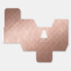 Modern, minimal docka för guld med metalliska effekter i rosa för flickor. Ny presentlåda för år med rosa guld geometrisk utformning och vit julafton träd.