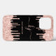 Girly, Elegant, Sylish Ro Guld Glitter Drips 2 Monogram Script anpassningsbar personlig namn monogrammed iphone case. Med ett modernt lyxfaux rosa ros guld glitter som droppar ram, ett stort dubbla-tecken med monogramstil med dekortecken (stort storlekt initialer) och ett serieteckensnitt namn i rosa på svart bakgrund. Enkel att anpassa den. Underbar kvinnlig girogåva till flickvän, mor, födelsedag och till alla som tycker om söt glamourous shiny sak.
