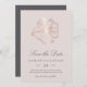 Meddela gästerna om din kommande destination, strand eller tropiska öar bröllop med den vackra sommaren spara datumkorten med en bild av fikonet ro-guld, hibiscus-blomman på en mjuk baksida av den rosan. Elegant mörk grått-skript och blockera visningar för att skriva bröllop (namn, bröllop, datum, plats och webbplats).