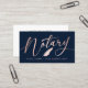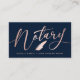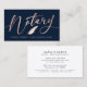 Elegant, trendig affärskort för notarie-lån som undertecknar agent med faux foil ro guld handskrivet calligraphy-skript ''notary'' på marin bakgrund. Anpassa med en namn på framsidan och detaljer på baksidan.