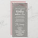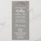 Eleganten ro guld och grått-bröllopsprogrammet är perfekt för ett klassat bröllop. Utformningen har en enastående rosa leafy ram på mörkens grått-bakgrund och har ett lysande kursivt teckensnitt. Ta med namn i bruden och trimmen, datum och plats för bröllop, tack, serviceordning, brudens sida och ett minnesmärke "i kärleksfullt minne" som tillval. Obs! Den här utformningen har inte äkta folie av ro guld. Det är en högkvalitativ grafik som framstår som en shimmery ro guld.