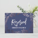Denna "reserverade" skylt ro och elegant bröllop är perfekt för ett klassat bröllop. Utformningen har en enastående rosa leafy ram i mörk blått bakgrund och har ett lysande kursivt teckensnitt. Använda korten till att reservera stolar eller bord vid ceremonin eller mottagningen i bröllop. Obs! Den här utformningen har inte äkta folie av ro guld. Det är en högkvalitativ grafik som framstår som en shimmery ro guld.