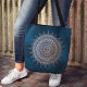 Grymt cirkelformad blommigt mandala art till väskan i ro guld på djup tealbakgrund, inspirerad av mehndi henna body art. Underbar för att transportera sak till yoga, dans eller gym.