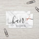 Den här moderna frisättningslistrutan har affärskort med saxar av koppar från ro guld, vit marmorbakgrund och kalligrafi av elegant.