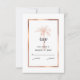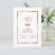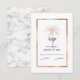 Ge dina gäster att svara på din bröllopsinbjudan med den här elegant OSA kort som innehåller ett modernt skript, grått av kol med en kopparkonstnärlig handflatan-träd och kopparro av koppar från ro guld på framsidan. En vit och grått marmor bakgrund finns på baksidan av kortet.