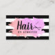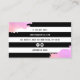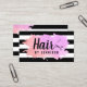 Modern affärskort med svart och vitt rand, övertoningsfaux guld & lila struktur, saxar och kalligrafteckensnitt för elegant.