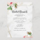 En vacker brunch-möhippa-meny för möhippan firande. Menykortet elegant brunch har en kalligrafisk rubrik med en minimalistisk presentation av menyn. Kortens kom med Blommigten botaniskt stil och löv dekoration.