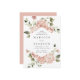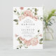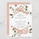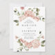 Bröllopbjudanden till blommigten i elegant som innehåller uppgifter om namn och bröllop som har ramats in av rosor i vattenfärg i skuggor av rosa och dammig ro med lush grönt löv. De romantiska bröllopsinbjudningarna i ro är perfekt för vår och sommarträdgårdsbröllop!