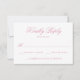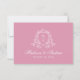 Lägg till en sofistikerad, romantisk beröring till din bröllop-svit med den här OSA kort för ro kvarts blommigt vapensköld. På framsidan finns ro kvarts-kalligrafi i elegant på vit bakgrund, anpassade med rekommenderat datum för OSA och svarstext. På baksidan framhäver en ro kvarts bakgrund en vit botanisk vapensköld som omger parets monogram, med matchande vit kalligrafi som visar namn och bröllop nedan. Perfekt för modern, romantisk eller raffinerad bröllop firande.
